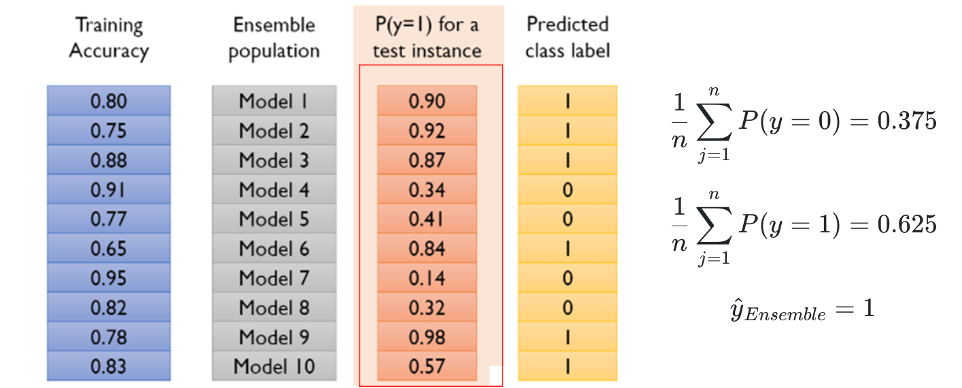 y^Ensemble=argimax(n1j=1∑nP(y=i)),i∈{0,1}