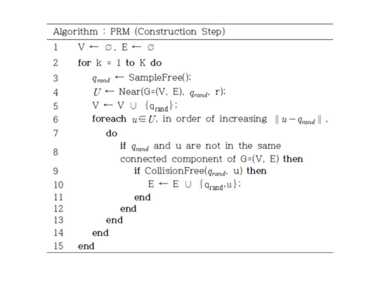 - 1996년 Kavraki 등에 의해 제안된 샘플링 경로 계획 방법