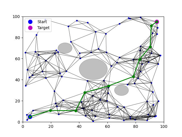 # PRM(Probabilistic Roadmap) 알고리즘을 실행하는 함수를 정의합니다.