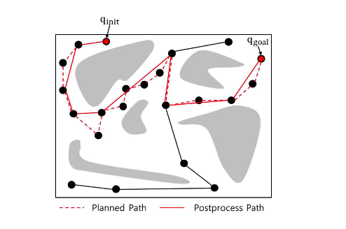 - 생성된 로드맵에 시작 지점과 도착 지점을 추가하여, 두 점을 연결하는 경로를 탐색