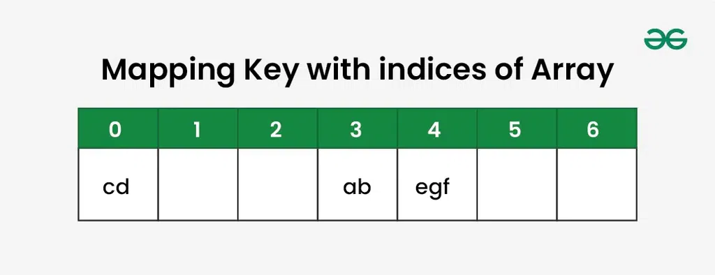 이것은 키값을 해쉬함수를 통해 자료를 저장할 특정 인덱스를 구하고 해당 인덱스에 자료를 저장합니다. 궁극적으로 키 값과 자료가 매핍되는 것입니다.
