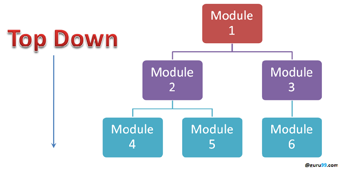 Top-down Integration Test는 맨 위 레벨에서 모듈들을 테스트해서 아래 모듈들을 테스트 하는 방법입니다.