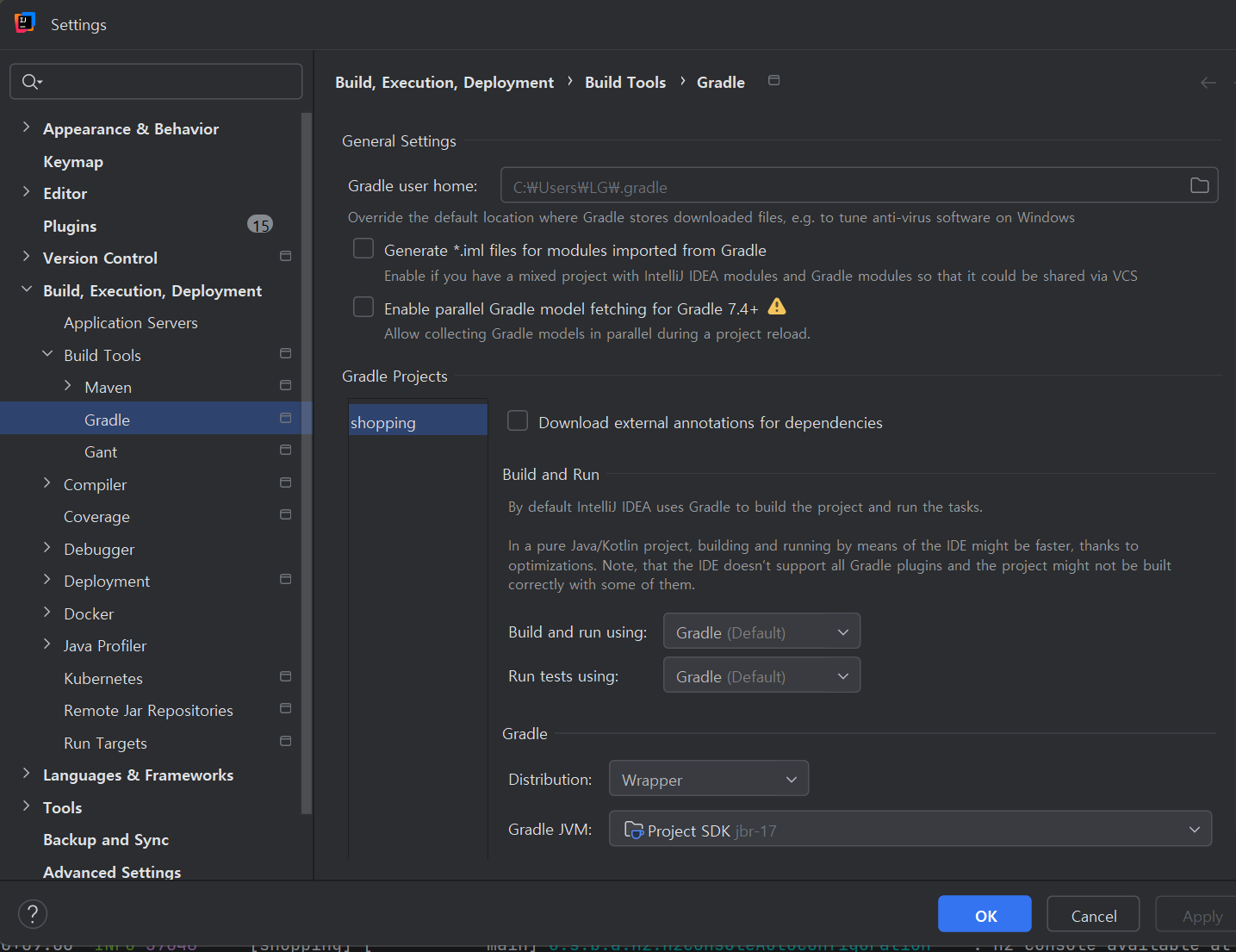 。settings - Build, Execution, Deployment - Build Tools - Gradle에서Gradle JVM에jdk 버전설정 후gradle reload