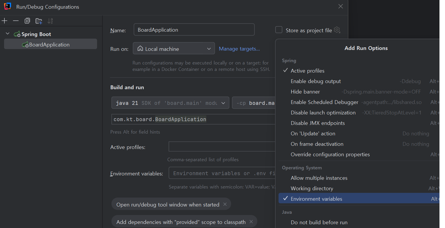 。해당Active profiles부분에환경명을 입력 시 해당환경의프로필이 활성화