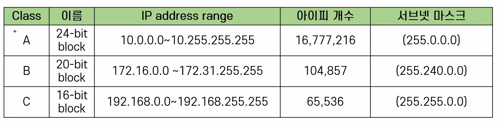 。해당 IP 대역을 사용하는 IP주소는 Private IP주소로 식별하도록 따로 구분되는 IP대역