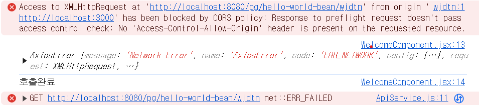 Preflight Request의OPTIONS HTTP Method에 의해 발생하는Response to preflight request doesn't pass access control check: No 'Access-Control-Allow-Origin' header is present on the requested resource오류 해결