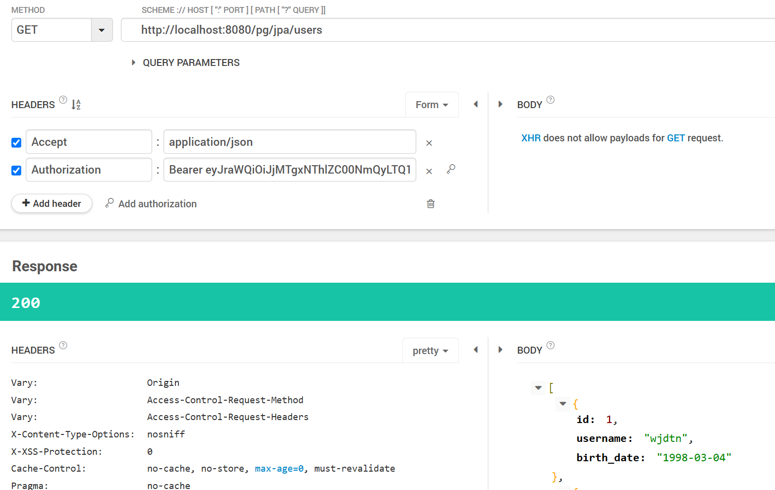 ▶{ Authorization : "Bearer JWT토큰" }으로 설정.