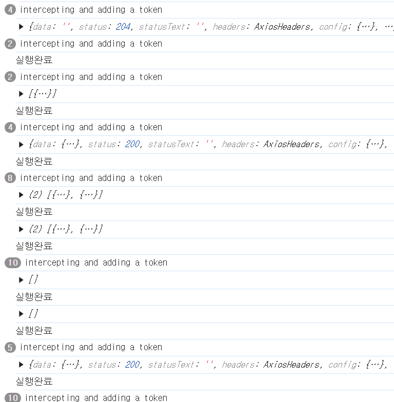 。apiClient를 이용해Authentication header없이API호출을 수행하는 다른React Component도 매번API호출을 수행 시Axios Interceptor가 정상적으로 작동됨을 관측 가능.