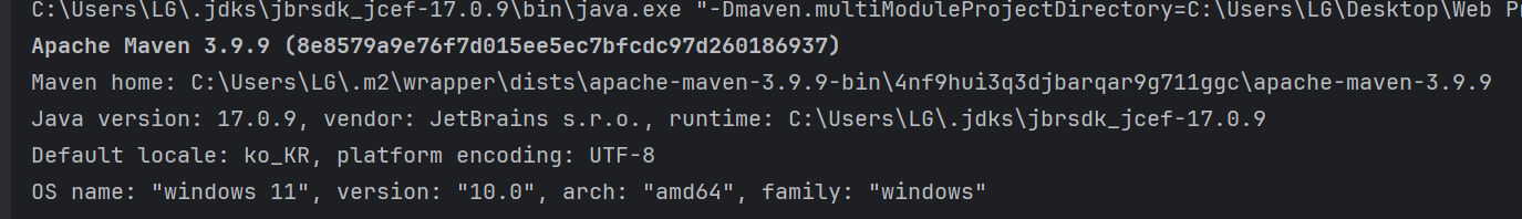 。현재 사용되는Maven의 버전,home폴더 경로,Java Version,OS정보를 지시.