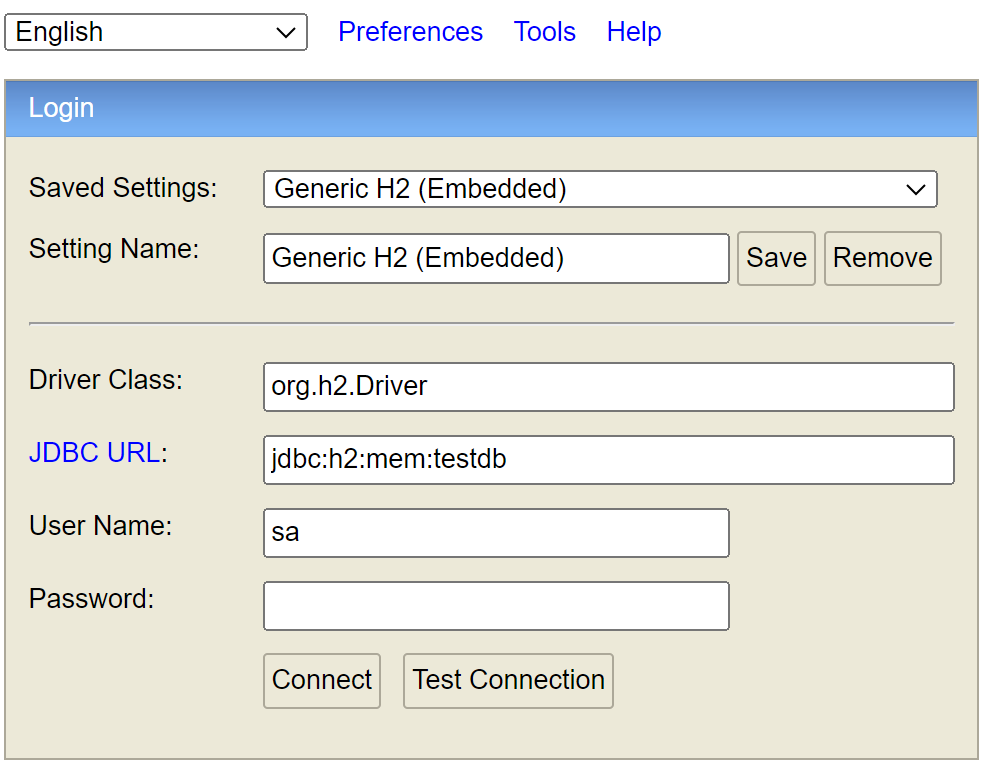 JDBC URL을 포함한 다음 property를application.properties로 추가 후 재실행 시 난수를 포함한 동적 URL이jdbc:h2:mem:testdb로 URL이 고정됨.