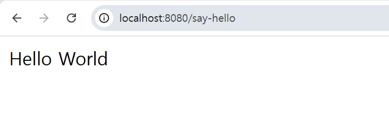 。localhost:8080/say-hello입력 시@ResponseBody를 통해 문자열"Hello World"을 그대로 브라우저에 전달하는Controller Method.