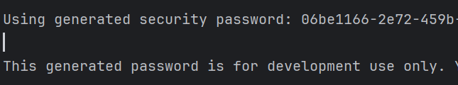 spring application을 재실행 시 console의 log창에 개발용 자격증명의PW가 생성되어 표시.