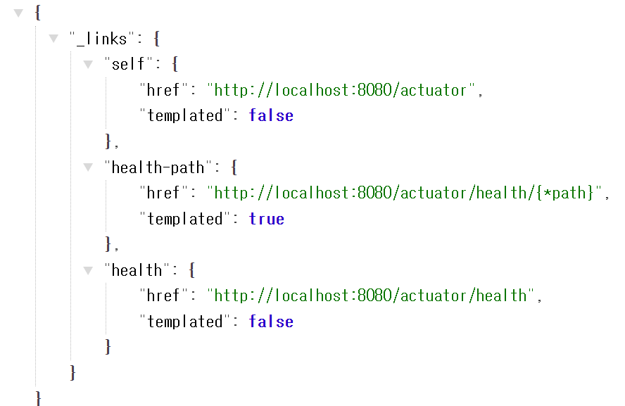 ▶ JSON Format으로 현재 Page의 URL로 연결되는selflink /health URL로 연결되는healthlink가 반환.