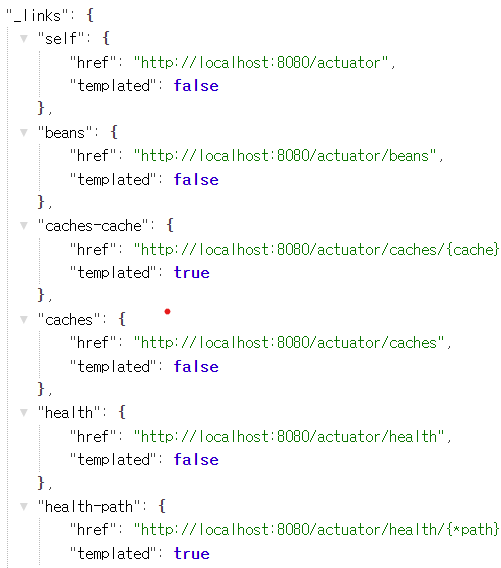 pom.xml에 다음 starter 구문을 넣고 maven을 재실행 후 http://localhost:8080/actuator 접속.