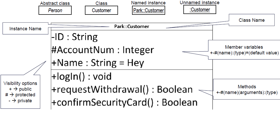 。프로그램의 구조 ( Class, Object 등 )의 관계표현 시 사용.