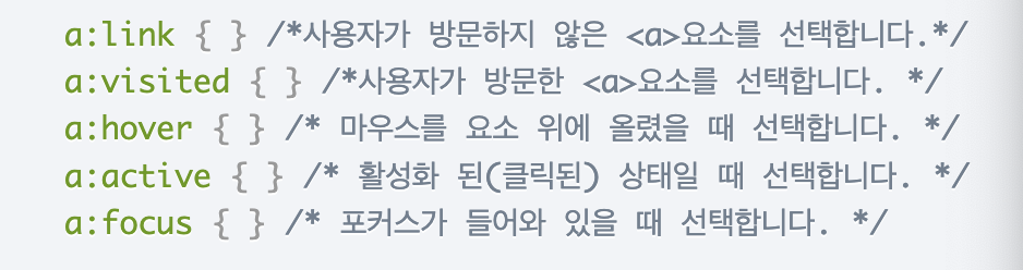 •가상 클래스는 요소의 상태 정보에 기반해 요소를 선택
