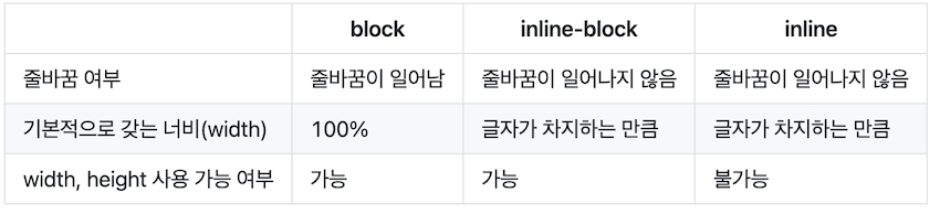 •줄 바꿈이 일어나지 않는 동시에 block 박스의 특징을 가지는 박스: inline- block 박스