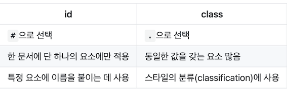 •ID 셀렉터는 #id로 입력하여 선택 가능