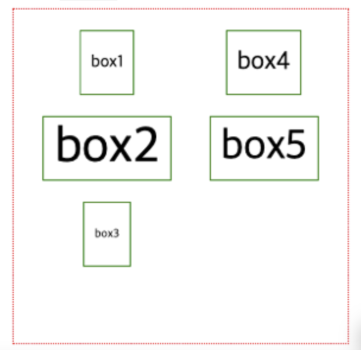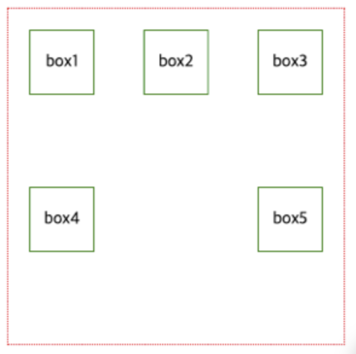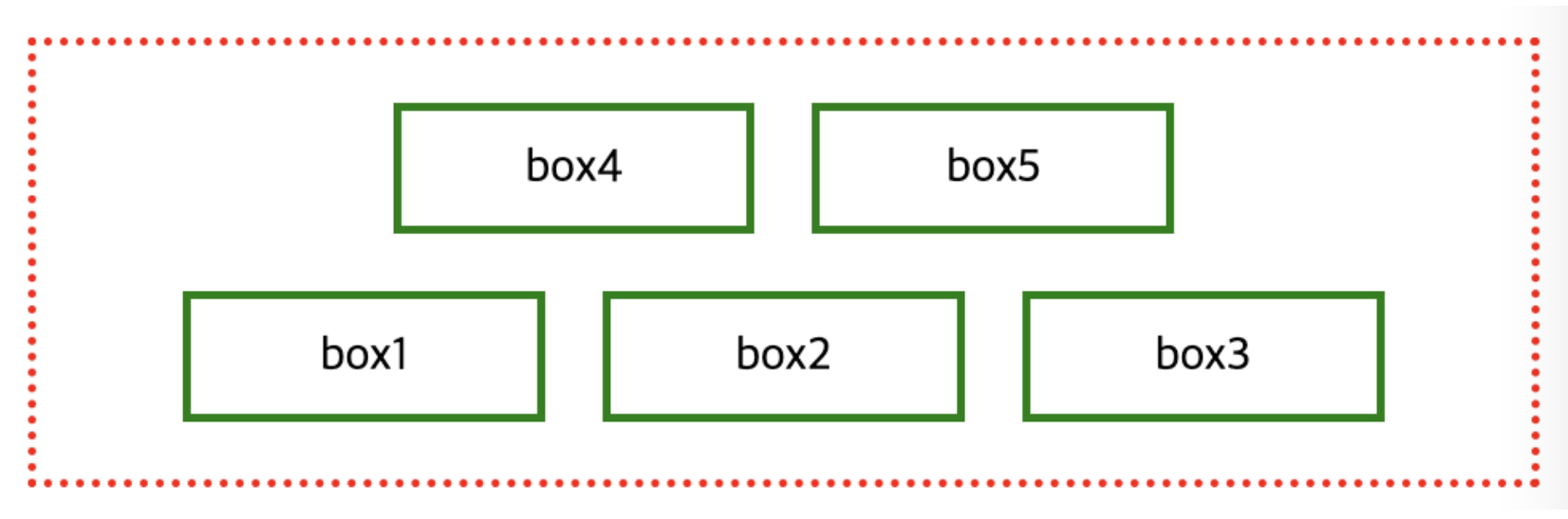 •box4와 box5를 봤을 때, 축 방향 (⬇️ ) 기준으로 축의 양쪽 끝으로 배치되어있으므로, justify-content : space-between; 가 적용되어 있음을 알 수 있습니다.