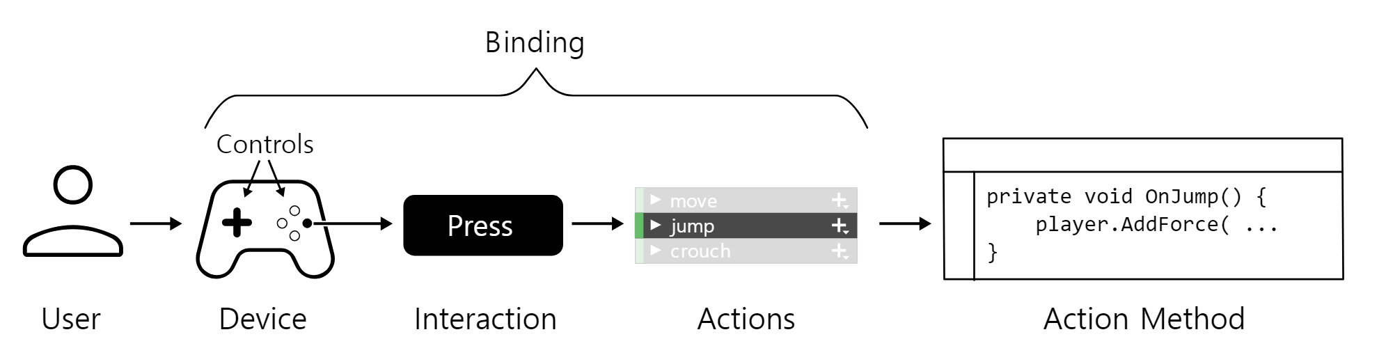 Input System을 사용해서 이런식으로 binding을 시킬 수 있다.