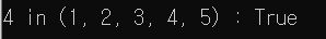 print(f"{data1} in (1, 2, 3, 4, 5) : {data1 in (1, 2, 3, 4, 5)}")