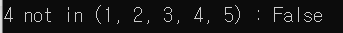 print(f"{data1} not in (1, 2, 3, 4, 5) : {data1 not in (1, 2, 3, 4, 5)}")