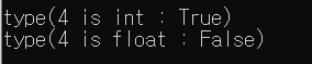 print(f'type({data1} is int : {type(data1) is int})')