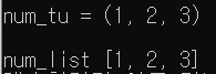 - list 는 [] 로 작성합니다.