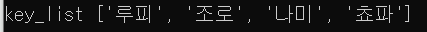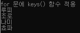 print("for 문에 keys() 함수 적용") for k in onepiece_lv.keys(): print(k) print()