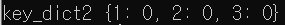 key_tu = 1, 2, 3 key_dict2 = {}.fromkeys(key_tu, 0) print(f"key_dict2 {key_dict2}")