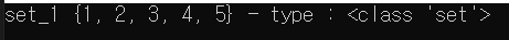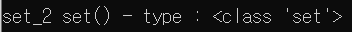 - set 은 순서가 없기 때문에, 값 확인시 순서가 바뀔 수 있습니다.