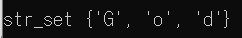 set() 생성자에 하나의 문자열을 저장하면 한글자씩 분리되어 set 에 저장됩니다.