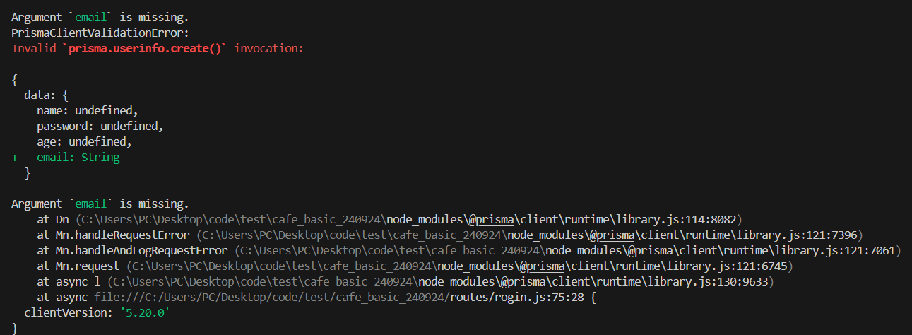mysql, prisma 스키마, 코드 본문에서 email이 빠졌는지 확인했고, db도 날려보고 동기화도 해봤지만 계속 오류가 발생하면서 되지 않았다.