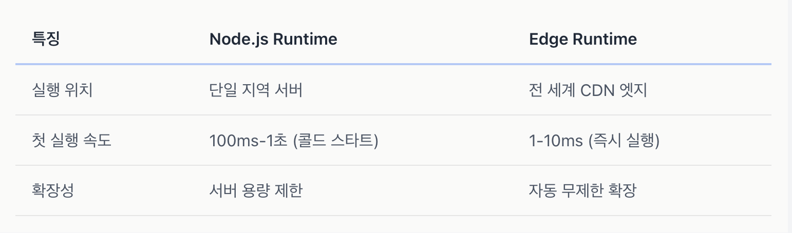 우리는 다음과 같은 총 3가지에서의 이점을 보고 Edge Runtime 사용을 결정했다.