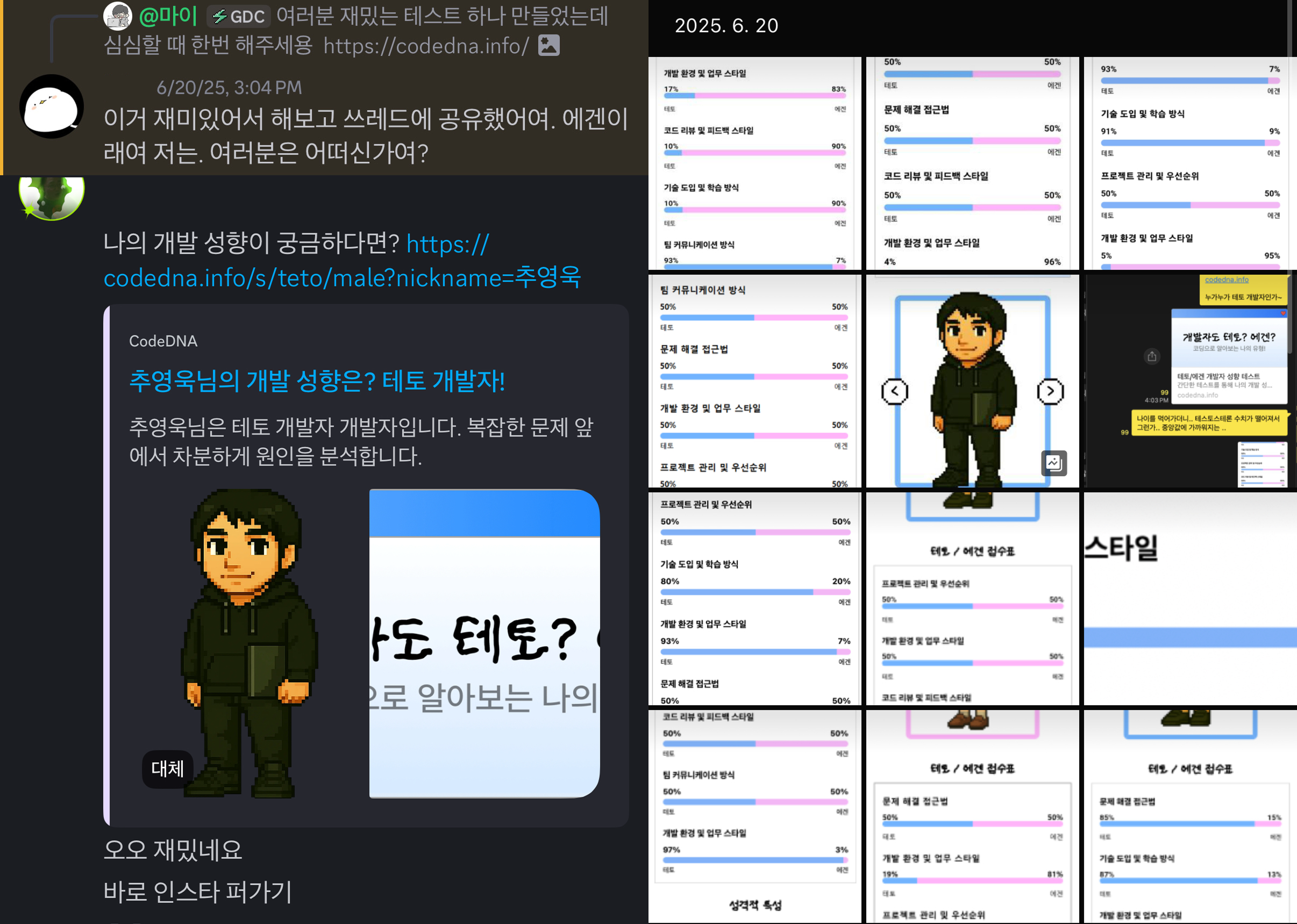 한 카톡방에서도 한분이 자신의 결과를 공유해주시니 다른 모든분들도 자신의 결과를 공유해주시기 시작했고 디스코드에서도 개인 인스타그램이나 스레드로 퍼가주시는 정말 감사한분들이 많았다.