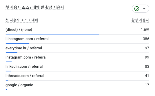 유입 소스별 분석으로는, 특히 개발 관련 인플루언서나 개인 계정에서의 공유로 인스타그램 유입이 많았다. 또한 에브리타임에서 HOT 게시물을 차지해 많은 트래픽을 발생시켰다. 구글 검색으로 들어오신 분은 어떻게 들어오신걸까..