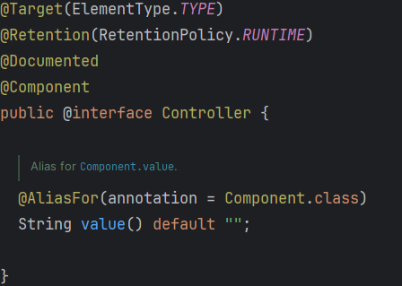# @Component 어노테이션으로 인하여 Spring은 해당 Controller를 Bean으로 등록하게 됩니다.
