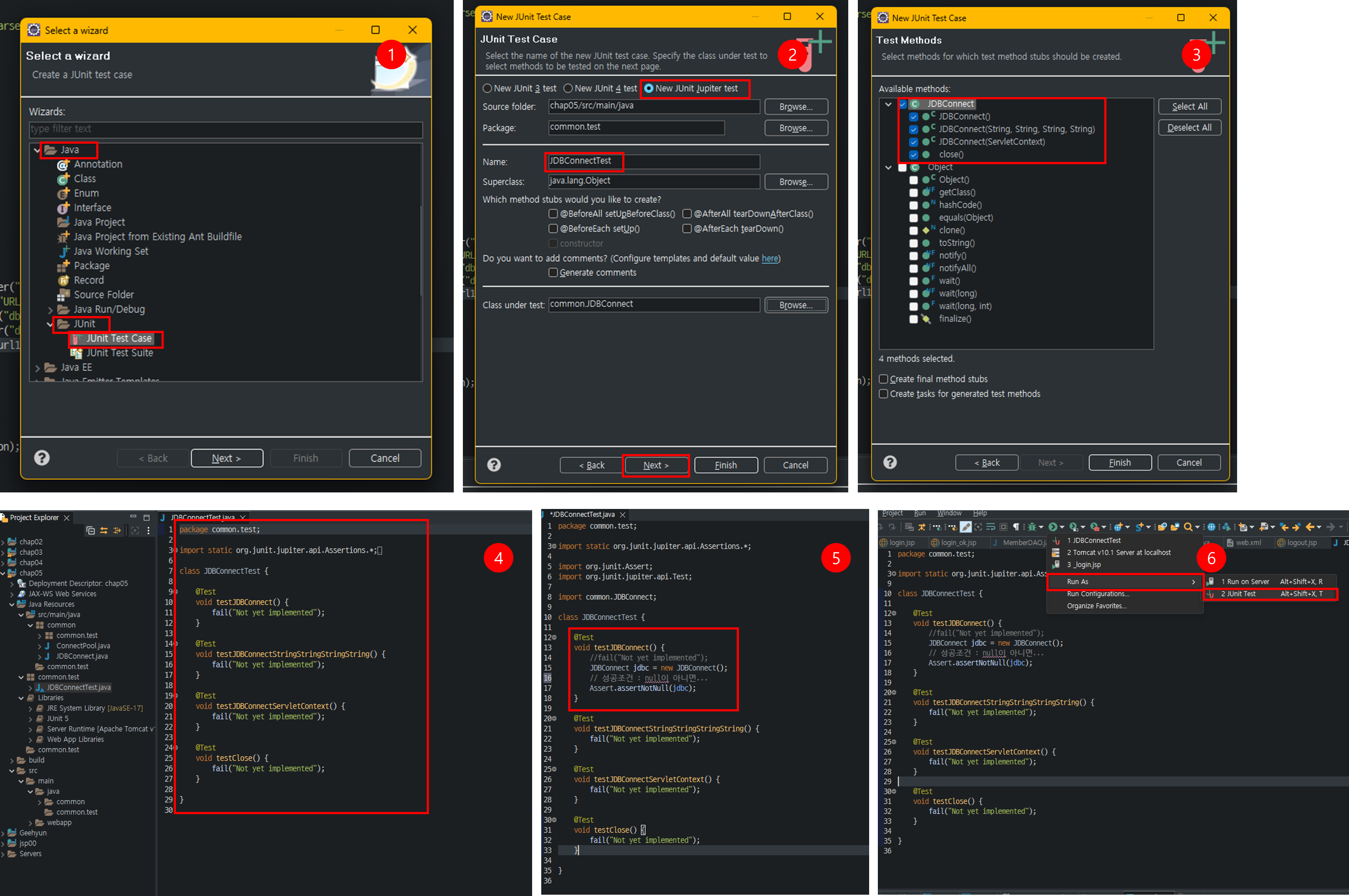 ② New JUnit Jupiter test / 파일명은, JDBConnecTest 로 설정 선택 후 [Next]