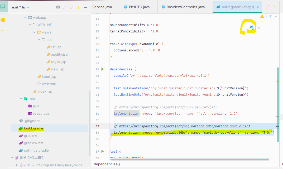 // DB 연결하는 부분 JDBC 커넥트 연결할 때와 유사