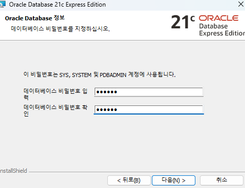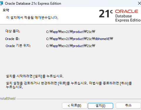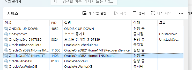 OracleServiceXE 과 OracleOraDB21Home1TNSListener 가 실행중으로 뜨면 된다.
