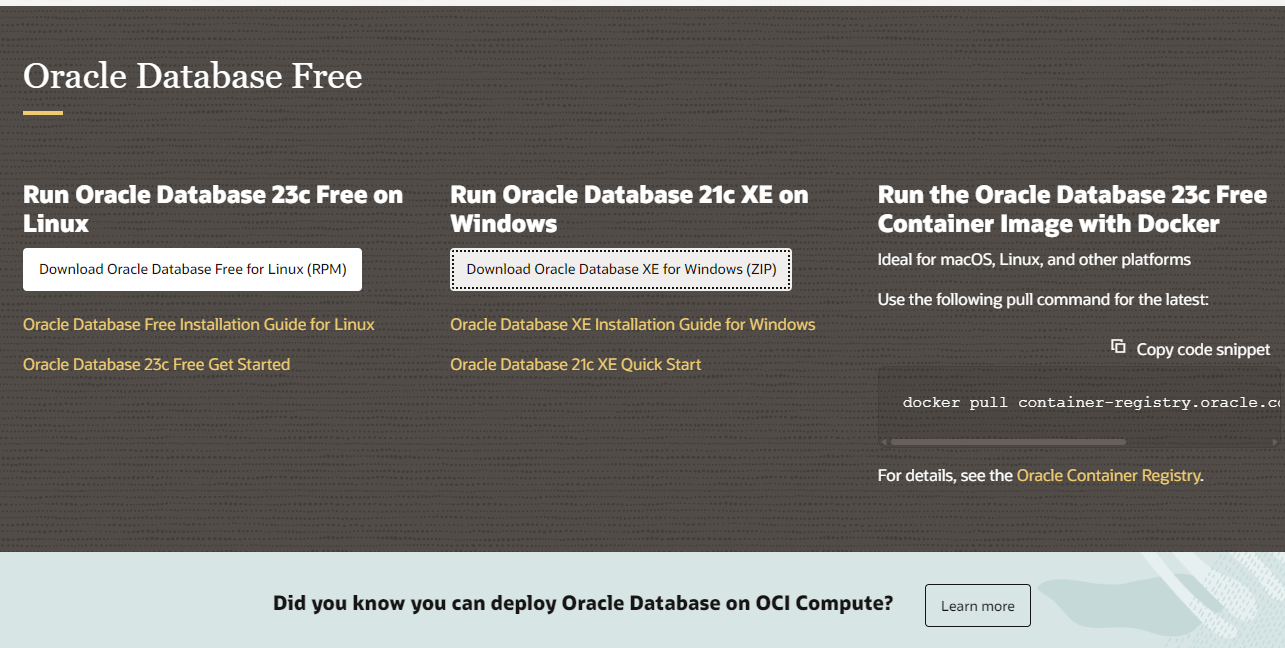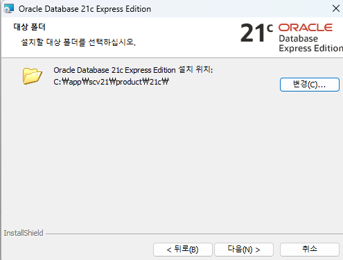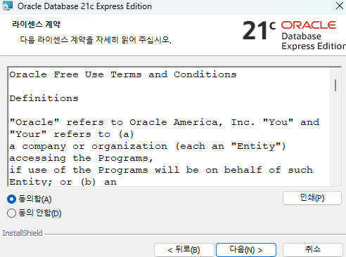 가운데 Oracle Database 21c XE on Windows ZIP 다운로드 클릭!