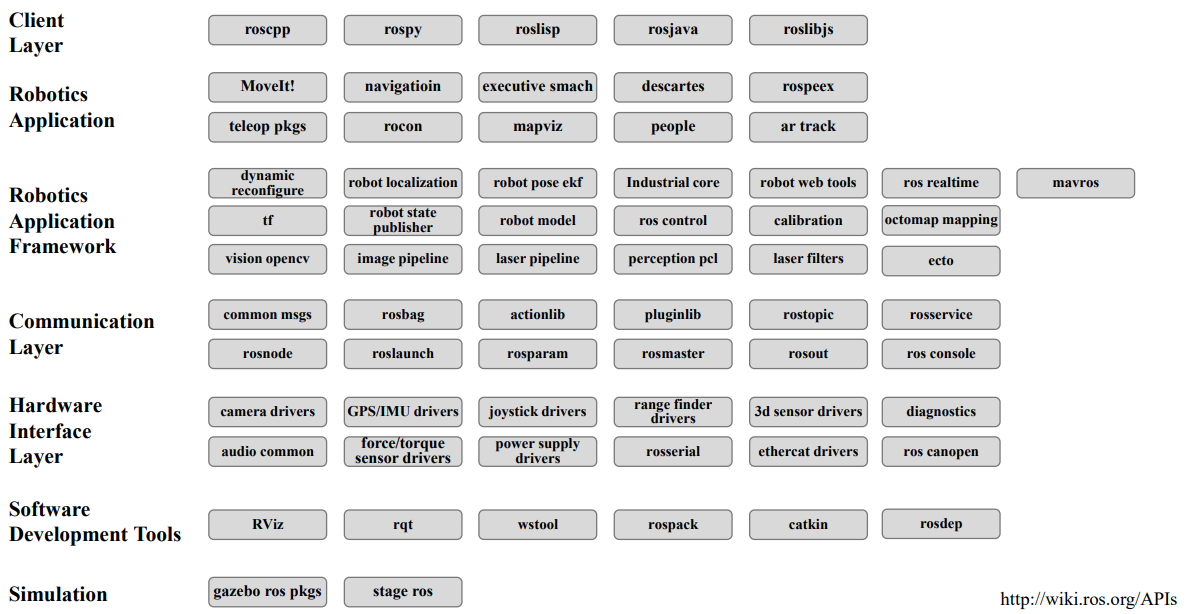 아래 이미지는 ROS의 레이어 구조를 시각화한 것이다.