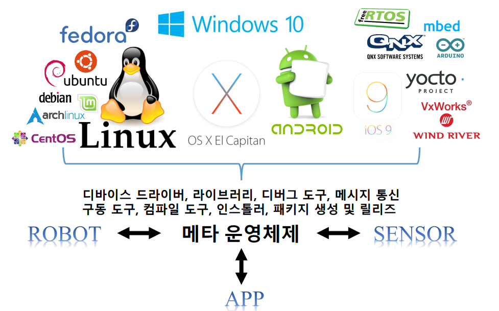 ROS(Robot Operating System)는 로봇을 위한 운영체제이며, 메타운영체제라고도 한다.