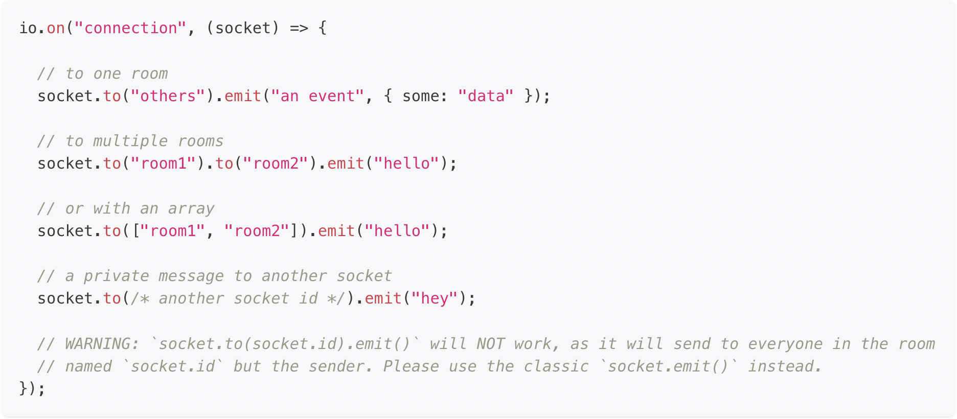 -> 방 전체에 메시지를 보낼 수 있음. documentation BSK.to(room)