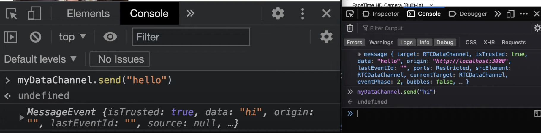-> offer 생성 쪽과, 받는 쪽 둘다에서 이벤트 리스너를 추가하는 이유: 서로의 chat을 들을려고.