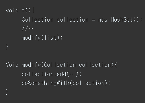 - 구현에 의존하기보다 정의한 인터페이스에 의존하도록 코드를 작성한다.