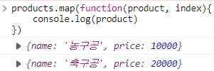 map, forEach 메소드는 모두 배열을 조회한다는 기능은 동일(조회 방법도 동일)하지만 forEach는 별다른 return이 없고 map은 새로운 배열을 반환한다 그래서 map을 잘 활용하면 가공해서 새로운 형태의 배열을 만들 수 있다.