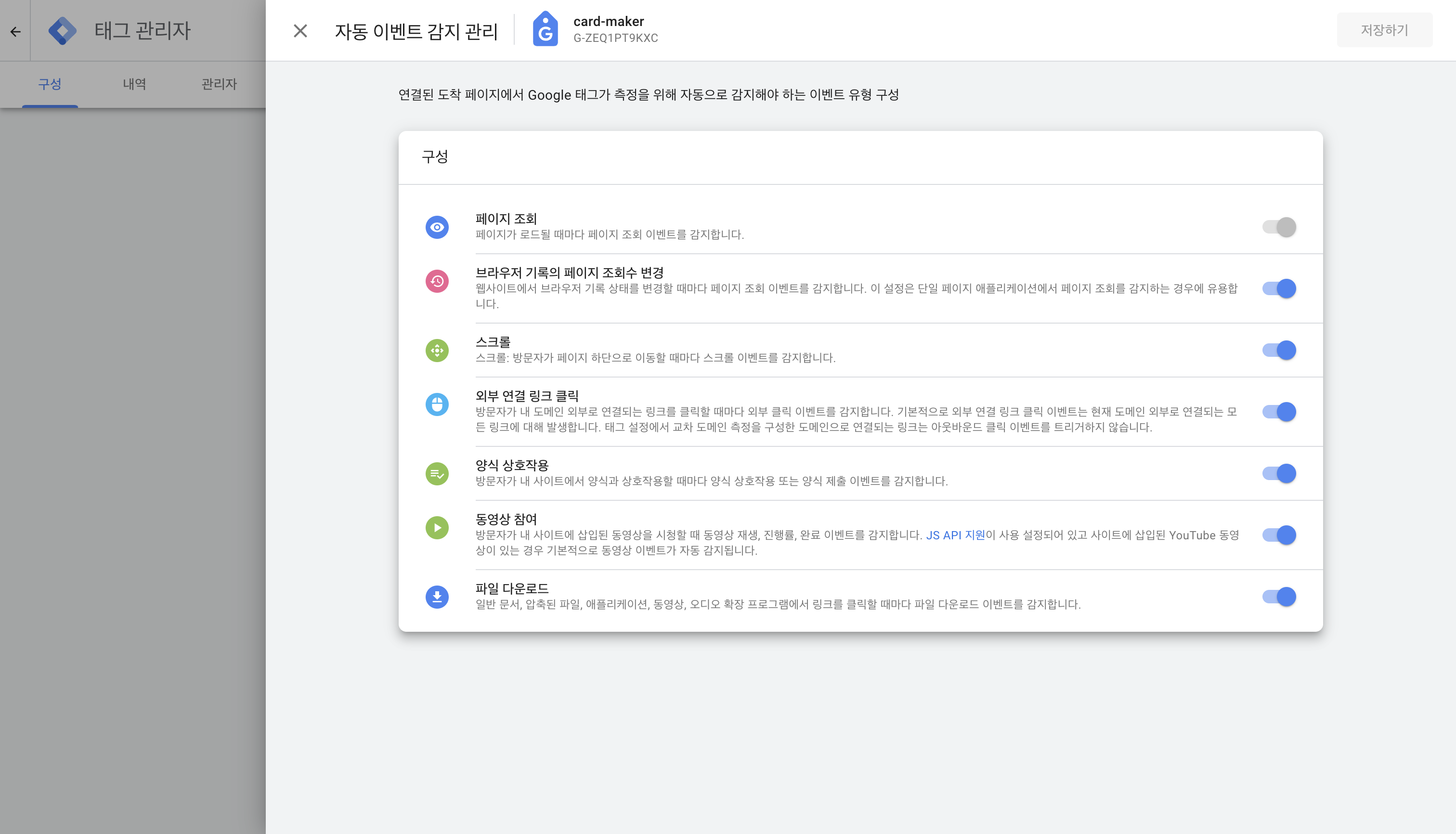 예를 들면, 아래 이미지에서 볼 수 있는 것과 같이 특정 페이지 조회, 스크롤, 파일 다운로드 등 사용자의 특정 동작을 집중적으로 분석할 수 있습니다. GTM의 가장 큰 장점 중 하나는 개발자의 도움을 최소화하여 GTM 태그를 쉽게 구현하는 동시에 수집되는 정보의 양과 유형을 개선할 수 있다는 점입니다.