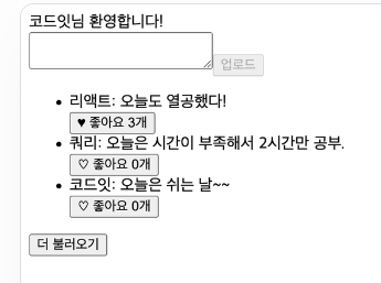 🔼 좋아요 개수가 제대로 보이고, 좋아요 버튼을 누른 유저로 로그인하면 버튼이 활성화된 상태로 잘 보입니다.