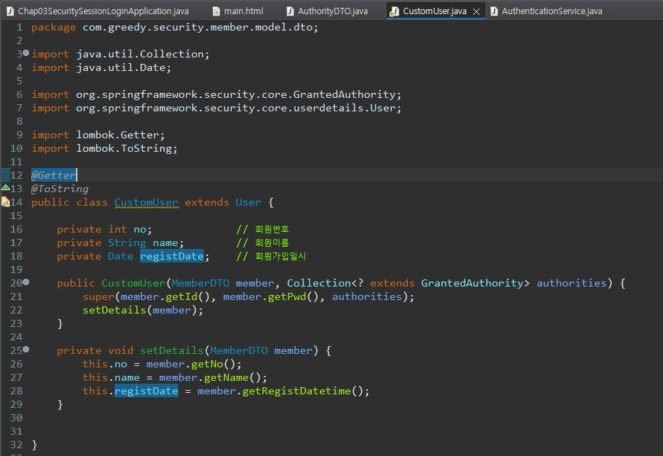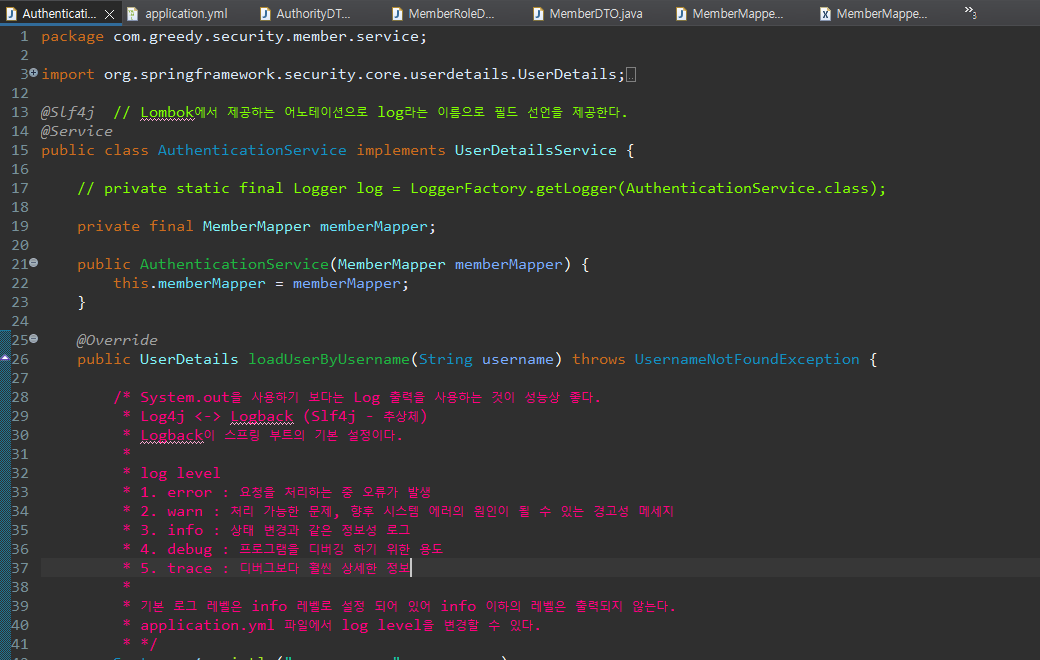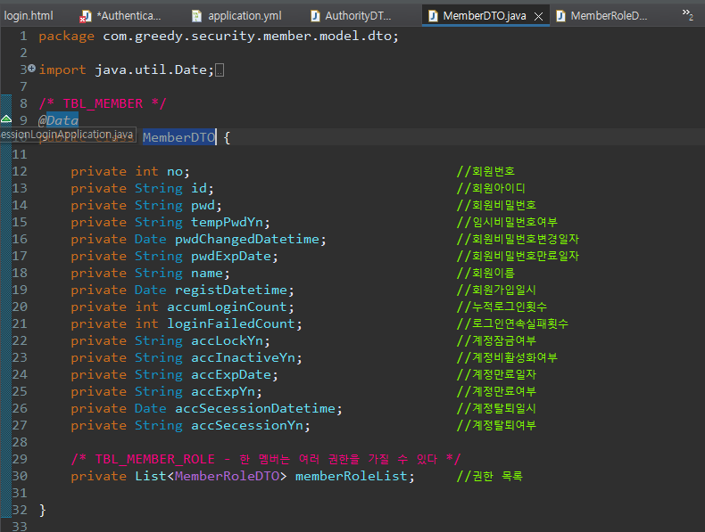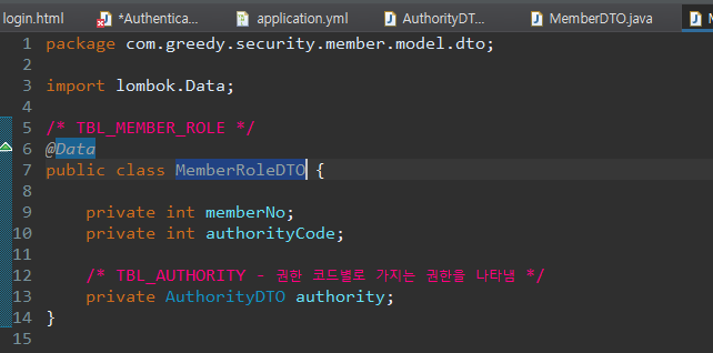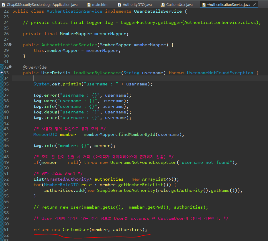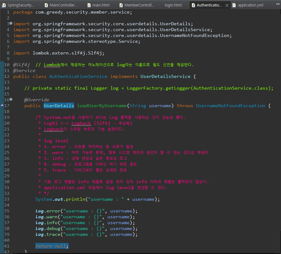 4번쨰5번째는 타임리프 문법이여서 어덴티케이션을 붙여줘야 값이 나오고 밑에도 마찬가지이다. 유저로 로그인